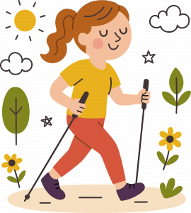 Montags findet die Nordic Walking Einheit, unter der Leitung von Geli statt.