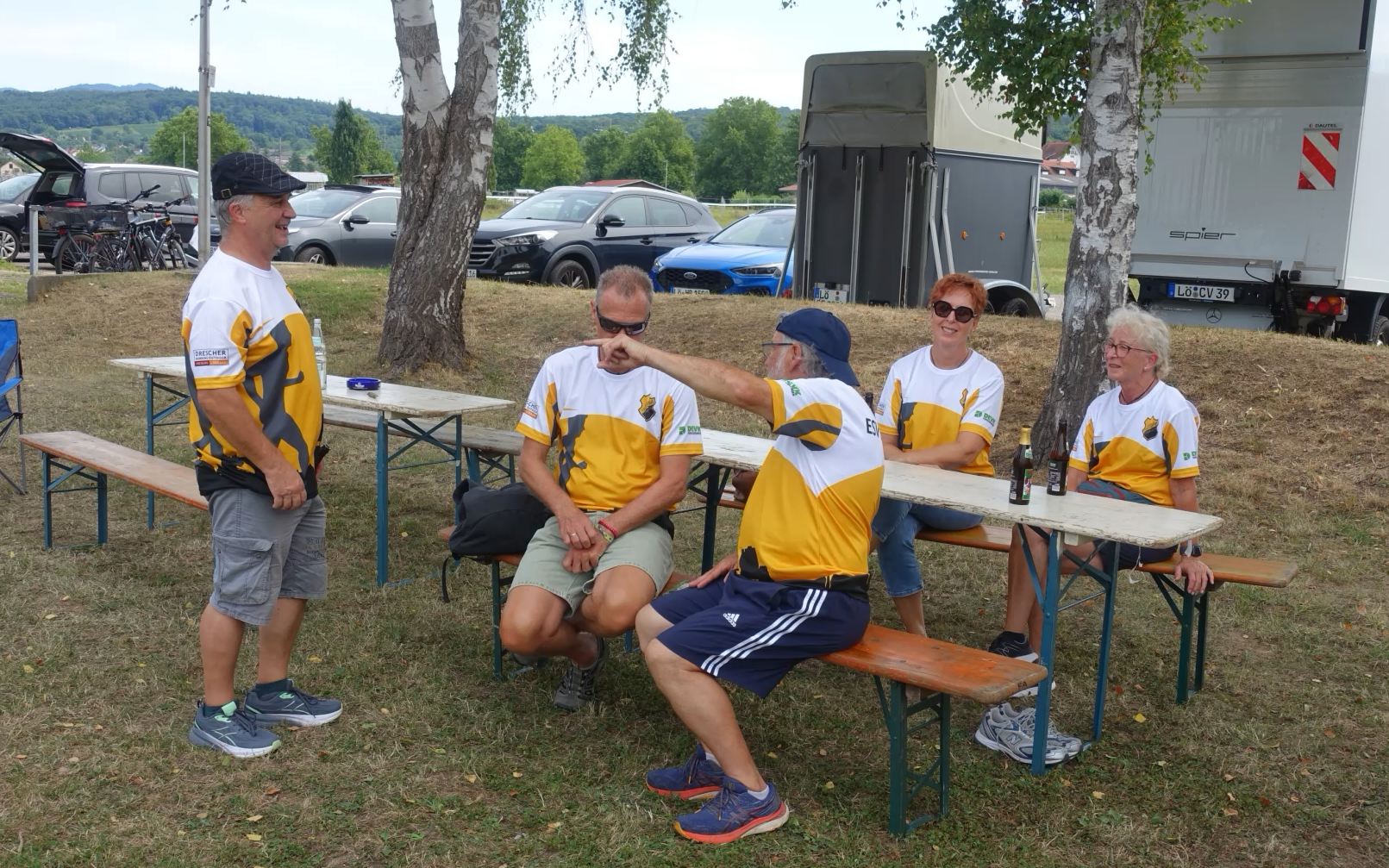 Die Gruppe begibt sich auf eine etwa 5 km lange Strecke durch den Lörracher Grüttpark, oder entlang der Hohen Straße durch den erfrischenden Rümminger Wald.